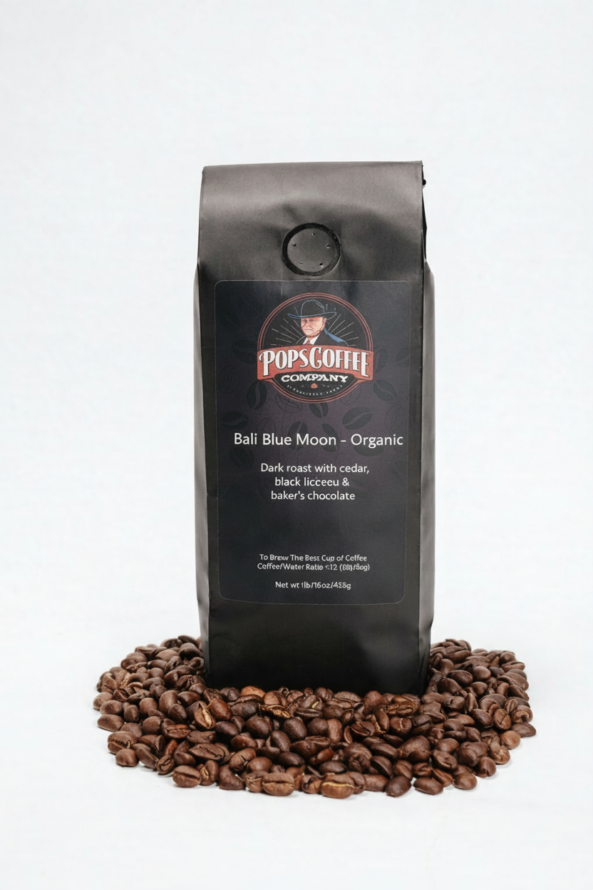 Indulge in the rich, intense flavor of our Bali Blue Moon Organic coffee. With a dark roast, this coffee boasts a heavy body and light acidity, perfectly complimented by notes of cedar, black licorice, and bakers chocolate. Experience the best of organic coffee with every sip.